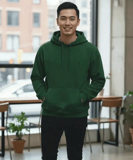 Short Men's Premium Fleece Pullover Hoodie Sweatshirt - Green & Heathered Gray (Discontinued Color)