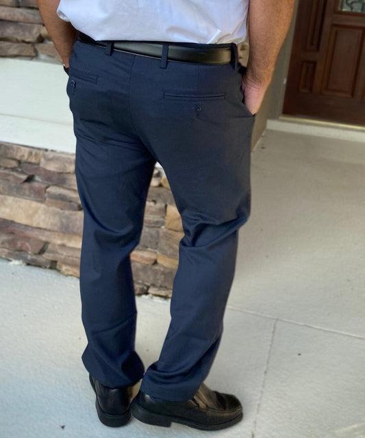 Dylan 2.0 - Flat-Front Stretch Cotton Chino - Relaxed Fit/ Straight Leg - Short Rise Men's Pants - Curved Waist - KHAKI & NAVY Available